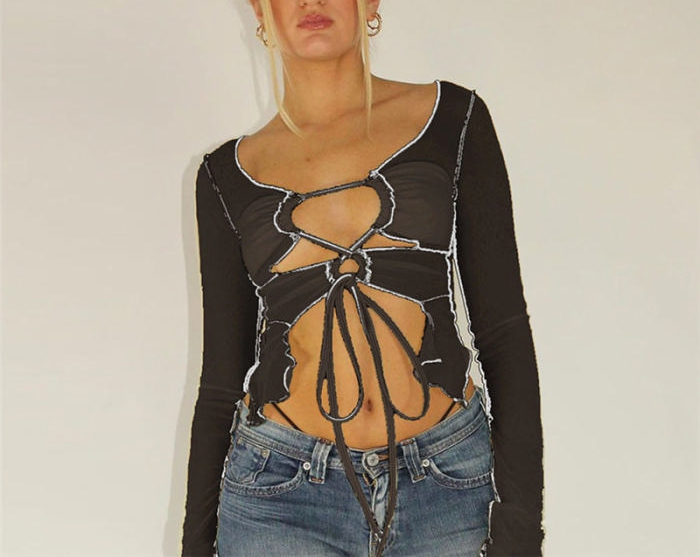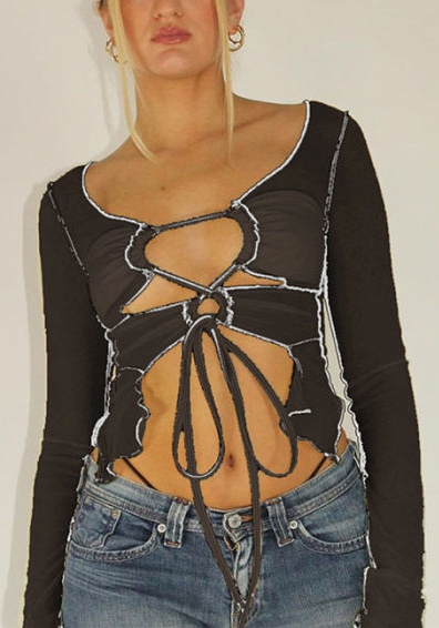 2022 Styles Women Fashion Spring INS Styles Mesh Lace Up TopsSKU: #CF49497-1
