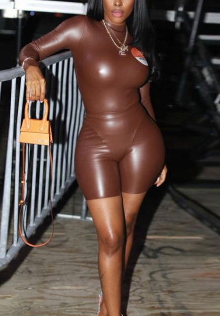 2022 Styles Women Fashion Spring INS Styles PU Long Sleeve Teddies Lingerie and Short Pants Short Two Piece SuitSKU: #CF49486-1