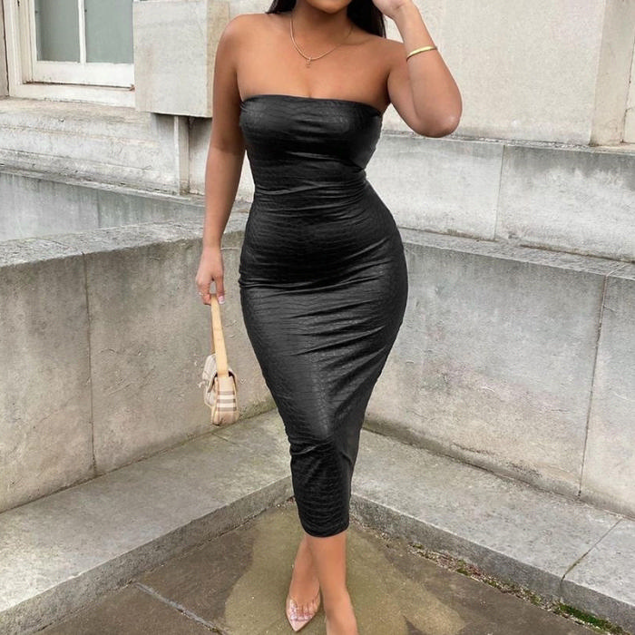 2022 Styles Women Fashion Spring INS Styles PU Tube Maxi DressSKU: #CF12266-2