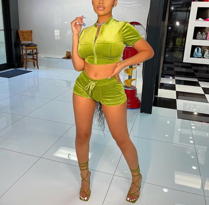 2022 Styles Women Fashion Spring INS Styles Velvet Short Two Piece SetSKU: #OEM5320-6
