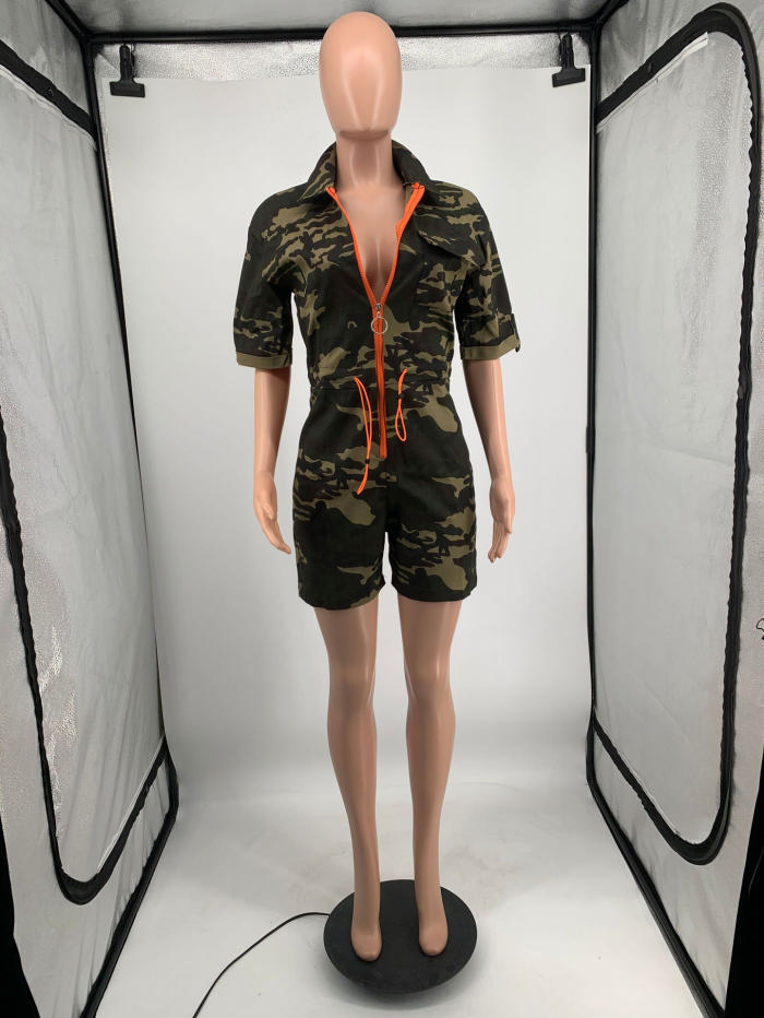 2022 Styles Women Fashion Summer INS Styles Front Zipper Camouflage JumpsuitSKU: #CF64012-1