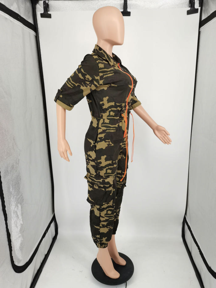 2022 Styles Women Fashion Summer INS Styles Front Zipper Camouflage Long Sleeve JumpsuitSKU: #CF64007-1