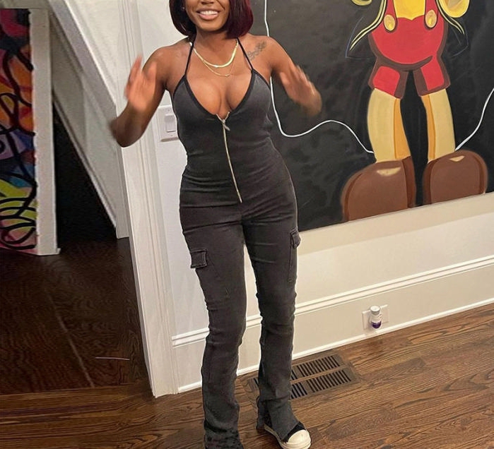 2022 Styles Women Fashion Summer INS Styles Front Zipper Strap Backless JumpsuitSKU: #CF49609-1