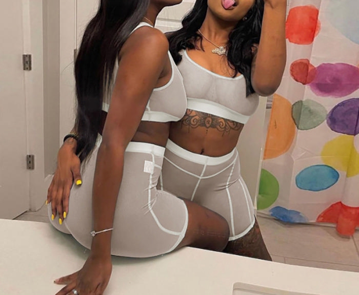 2022 Styles Women Fashion Summer INS Styles Mesh Short Two Piece SuitSKU: #CF49616-2