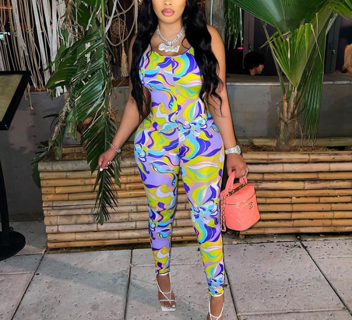2022 Styles Women Fashion Summer INS Styles Print JumpsuitSKU: #CF49543-3