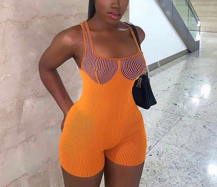 2022 Styles Women Fashion Summer INS Styles Rib Print Romper JumpsuitSKU: #CF49634-2