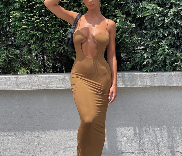 2022 Styles Women Fashion Summer INS Styles Solid Color Cut Out Backless Maxi DressSKU: #CF12273-2