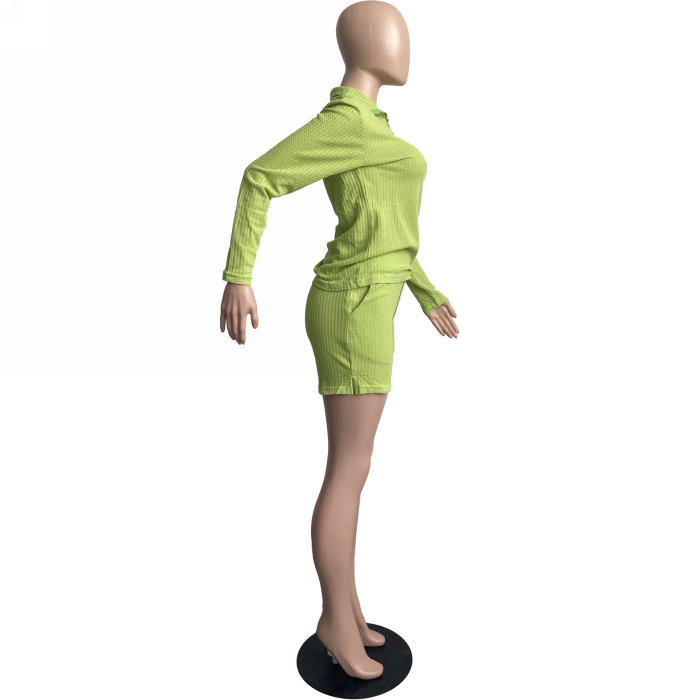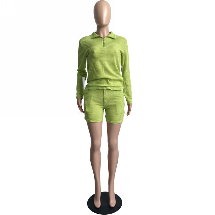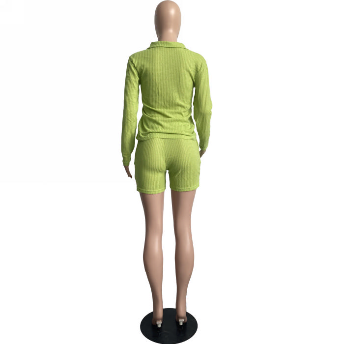 2022 Styles Women Fashion Summer INS Styles Solid Color Front Button Rib Short Two Pieces SuitSKU: #CF63019-4