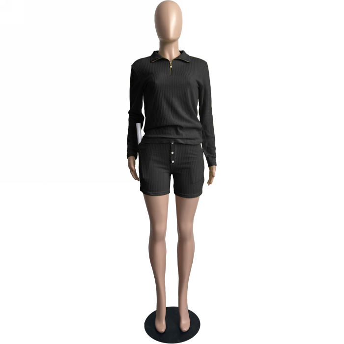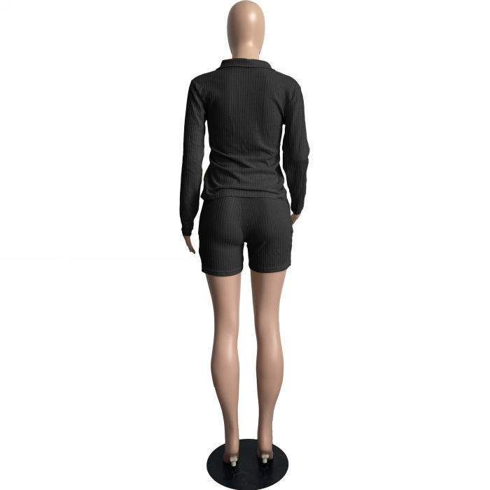 2022 Styles Women Fashion Summer INS Styles Solid Color Front Button Rib Short Two Pieces SuitSKU: #CF63019-3