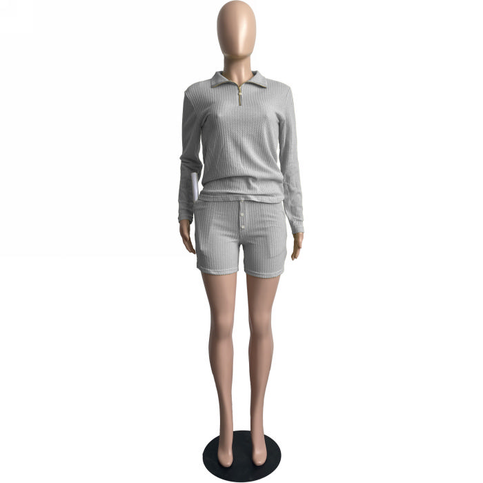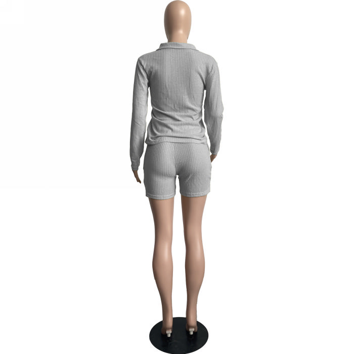 2022 Styles Women Fashion Summer INS Styles Solid Color Front Button Rib Short Two Pieces SuitSKU: #CF63019-2