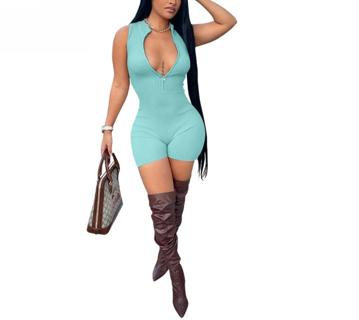 2022 Styles Women Fashion Summer INS Styles Solid Color Front Zipper Jumpsuit RomperSKU: #CF64008-5