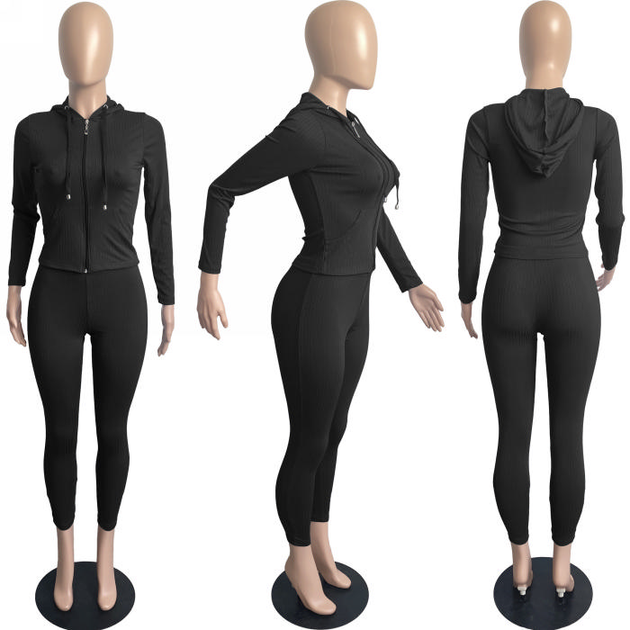 2022 Styles Women Fashion Summer INS Styles Solid Color Front Zipper Rib Two Pieces SetSKU: #CF63020-4