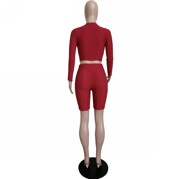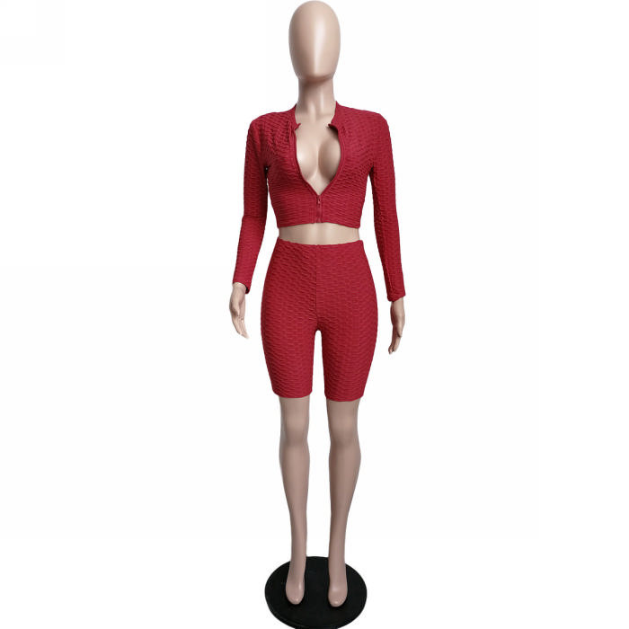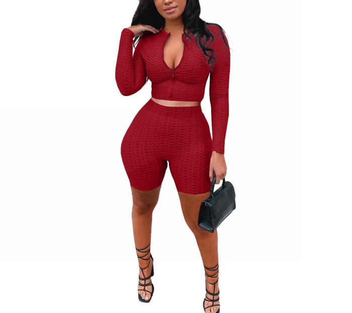 2022 Styles Women Fashion Summer INS Styles Solid Color Front Zipper Short Two Pieces SuitSKU: #CF62006-3