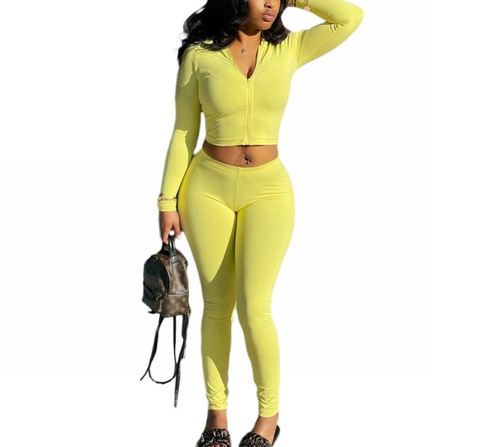 2022 Styles Women Fashion Summer INS Styles Solid Color Front Zipper Two Piece SetSKU: #CF62019-2
