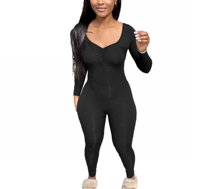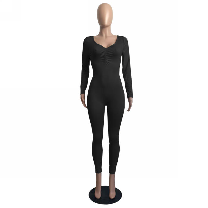 2022 Styles Women Fashion Summer INS Styles Solid Color Long Sleeve JumpsuitSKU: #CF63001-2