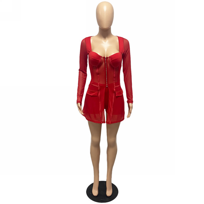 2022 Styles Women Fashion Summer INS Styles Solid Color Mesh Short Two Pieces SuitSKU: #CF62024-1