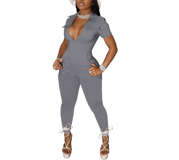 2022 Styles Women Fashion Summer INS Styles Solid Color OL JumpsuitSKU: #CF62010-1