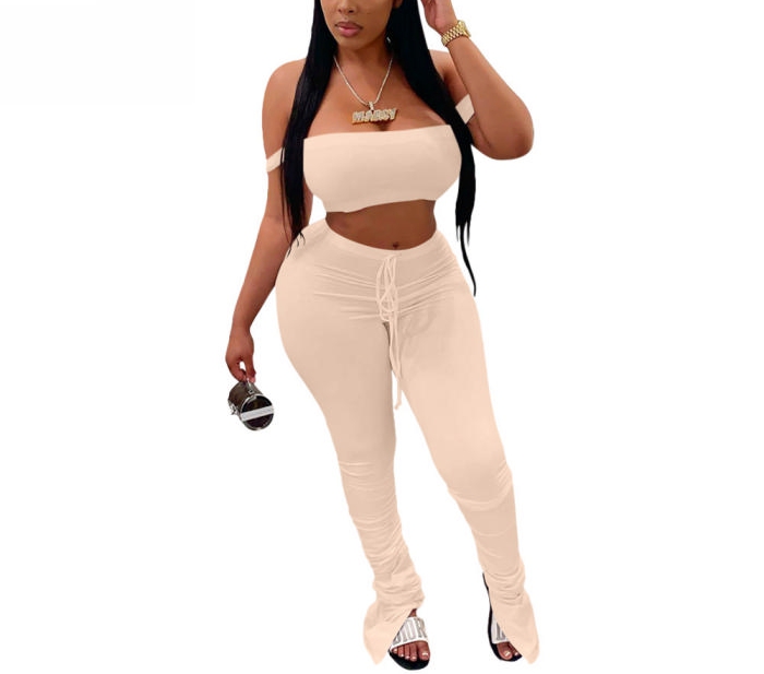 2022 Styles Women Fashion Summer INS Styles Solid Color Off Shoulder Two Piece SetSKU: #CF64013-6