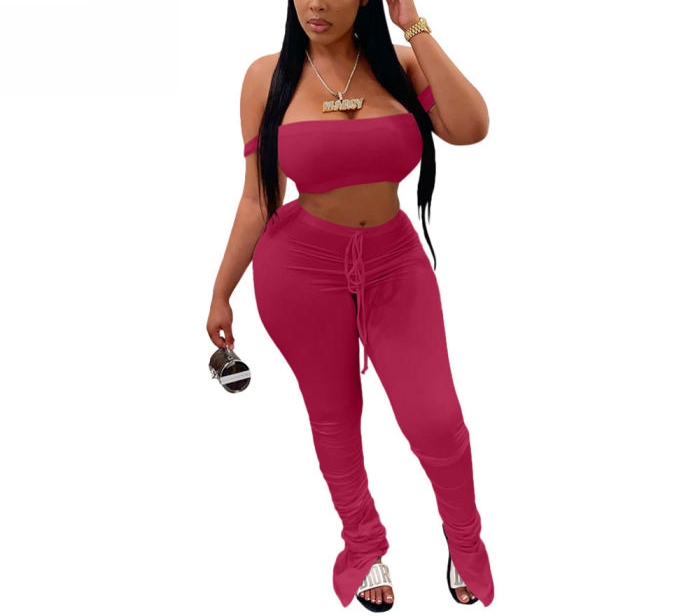2022 Styles Women Fashion Summer INS Styles Solid Color Off Shoulder Two Piece SetSKU: #CF64013-5
