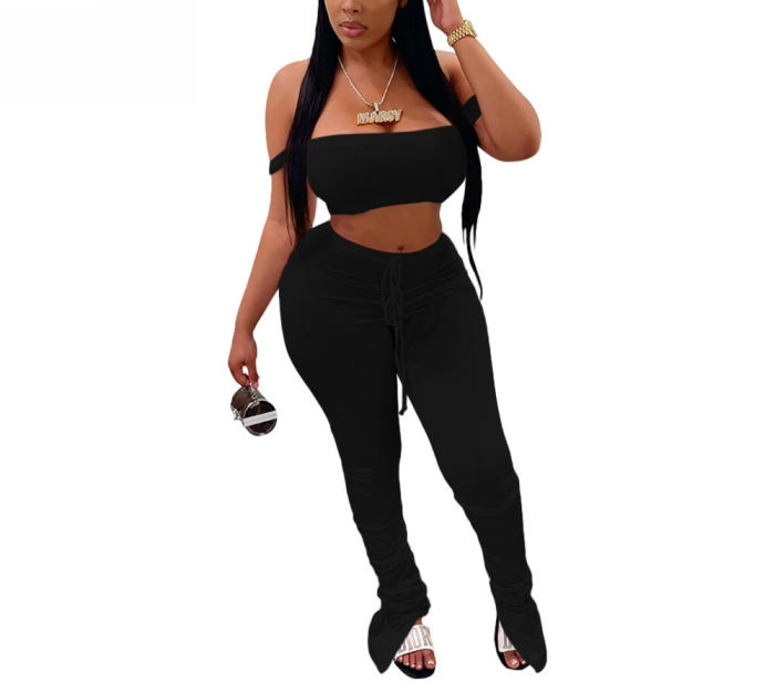 2022 Styles Women Fashion Summer INS Styles Solid Color Off Shoulder Two Piece SetSKU: #CF64013-4