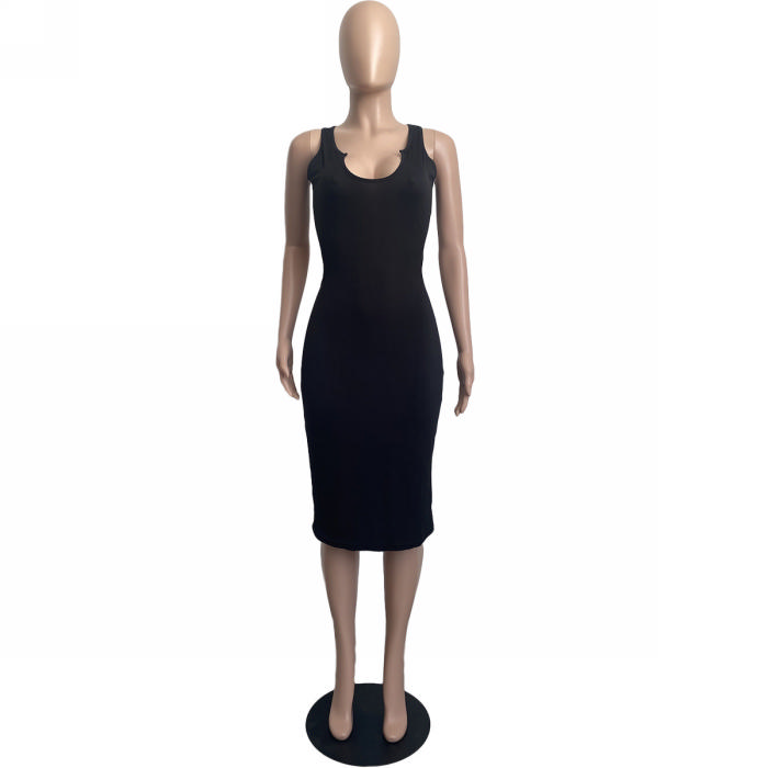2022 Styles Women Fashion Summer INS Styles Solid Color Rib Midi DressSKU: #CF63002-5