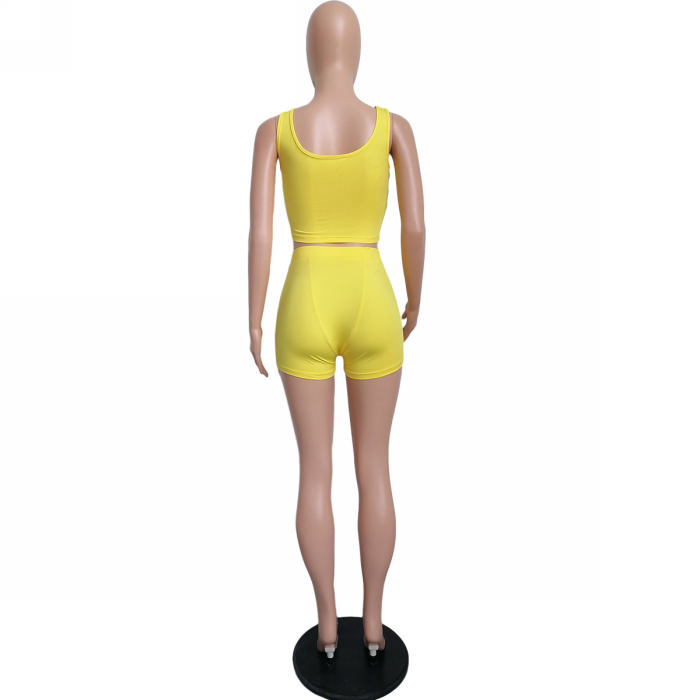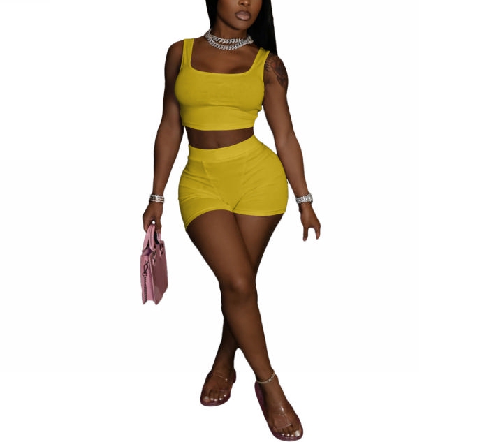 2022 Styles Women Fashion Summer INS Styles Solid Color Short Two Pieces SuitSKU: #CF62018-2