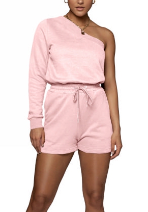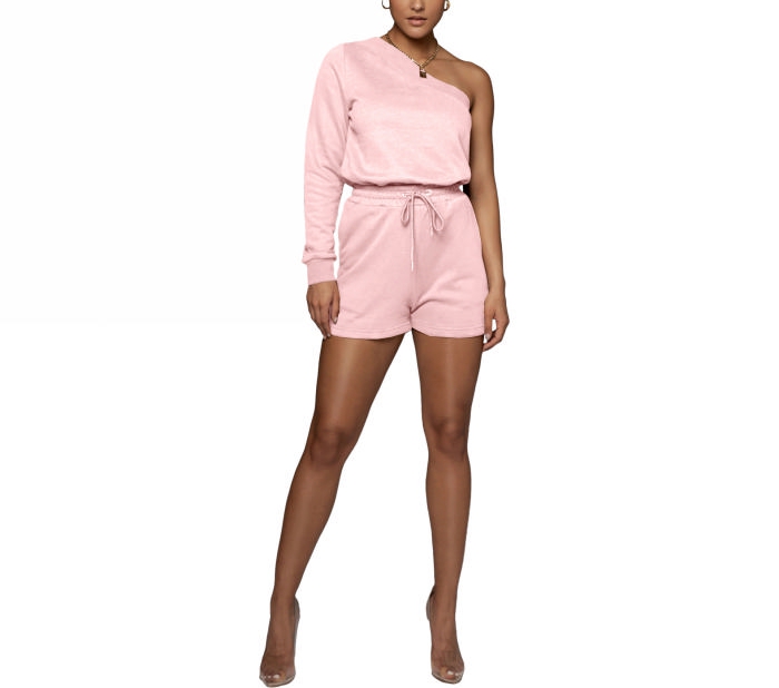 2022 Styles Women Fashion Summer INS Styles Solid Color Single Shoulder Long Sleeve Short Two Pieces SuitSKU: #CF63013-2