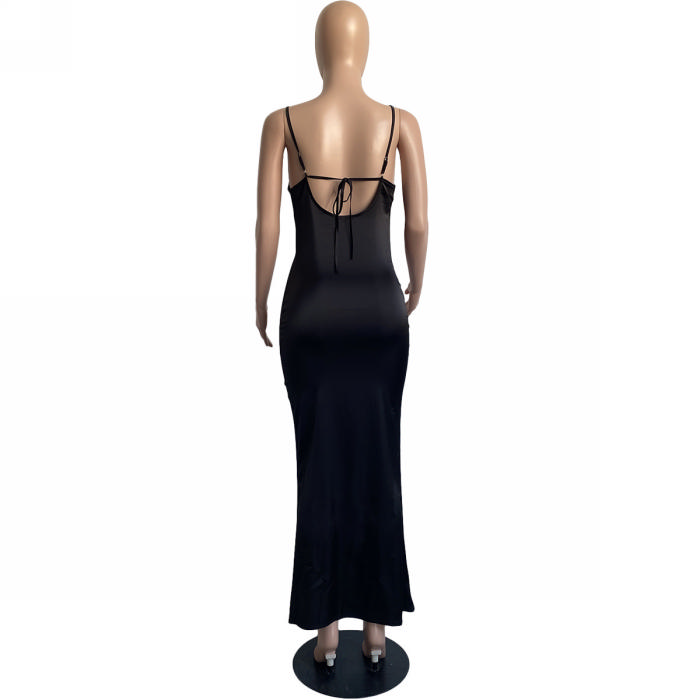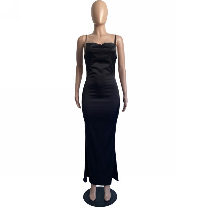 2022 Styles Women Fashion Summer INS Styles Solid Color Slik Strap Maxi DressSKU: #CF63022-2