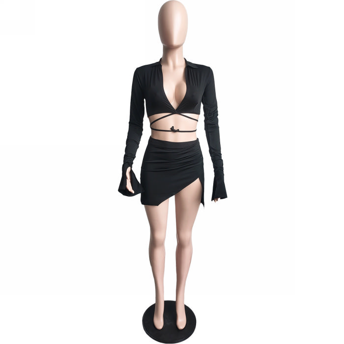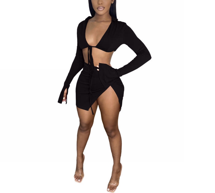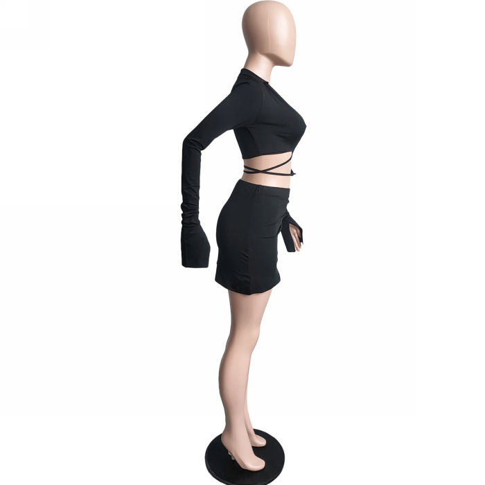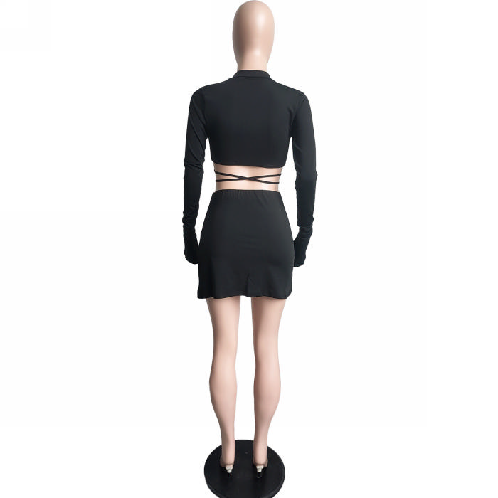 2022 Styles Women Fashion Summer INS Styles Solid Color Tie Two Piece DressSKU: #CF62014-1