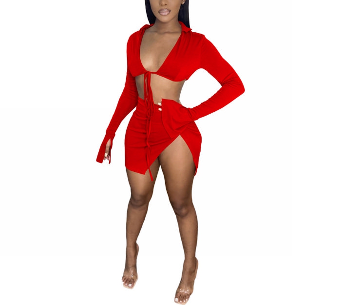 2022 Styles Women Fashion Summer INS Styles Solid Color Tie Two Piece DressSKU: #CF62014-6