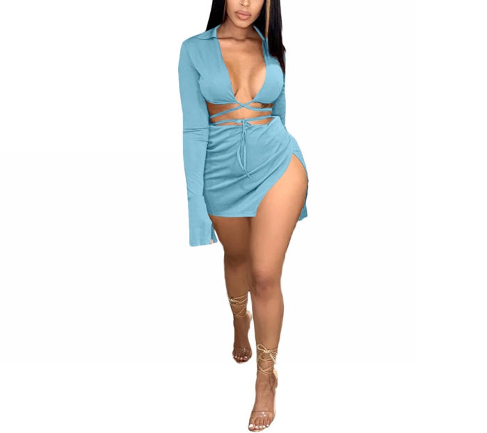 2022 Styles Women Fashion Summer INS Styles Solid Color Tie Two Piece DressSKU: #CF62014-5