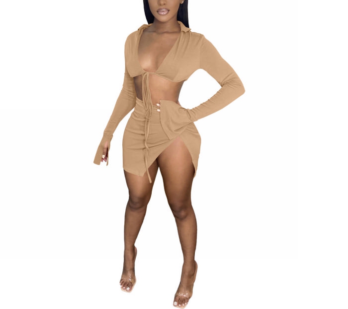 2022 Styles Women Fashion Summer INS Styles Solid Color Tie Two Piece DressSKU: #CF62014-4