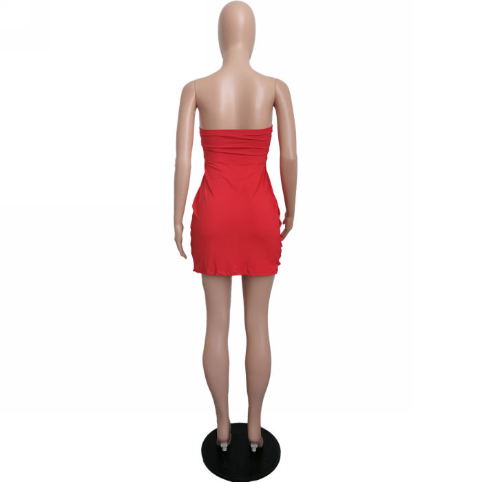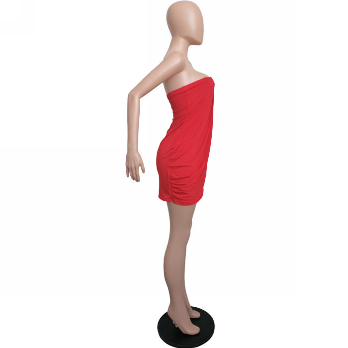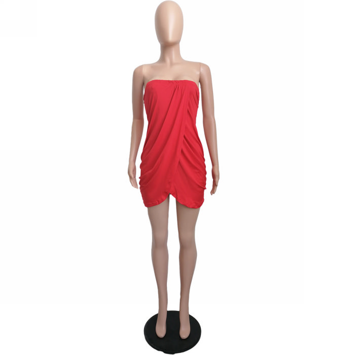 2022 Styles Women Fashion Summer INS Styles Solid Color Tube Irregular Mini DressSKU: #CF62002-1