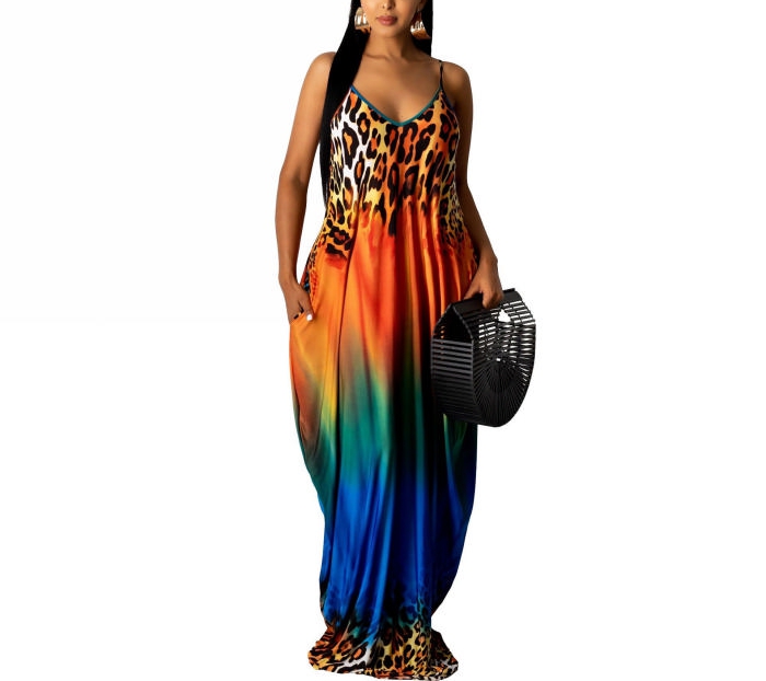 2022 Styles Women Fashion Summer INS Styles Strap Print Maxi DressSKU: #CF62004-1
