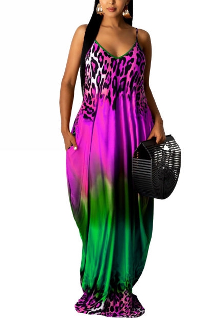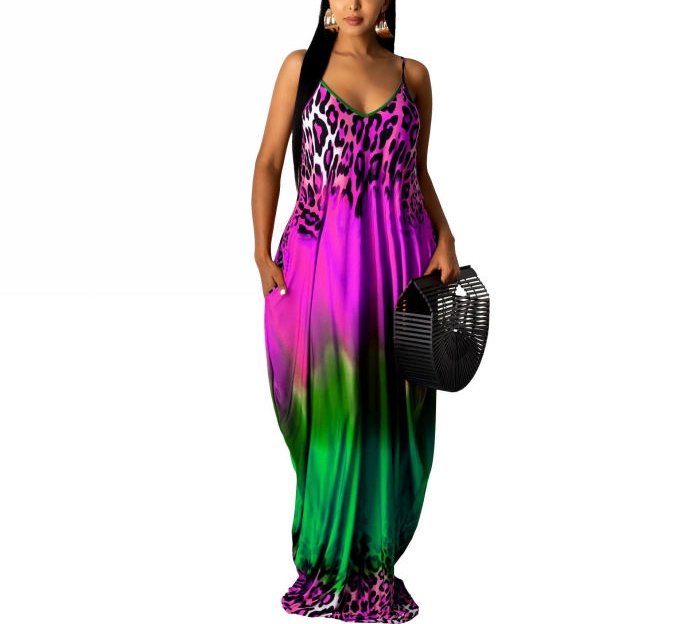 2022 Styles Women Fashion Summer INS Styles Strap Print Maxi DressSKU: #CF62004-3