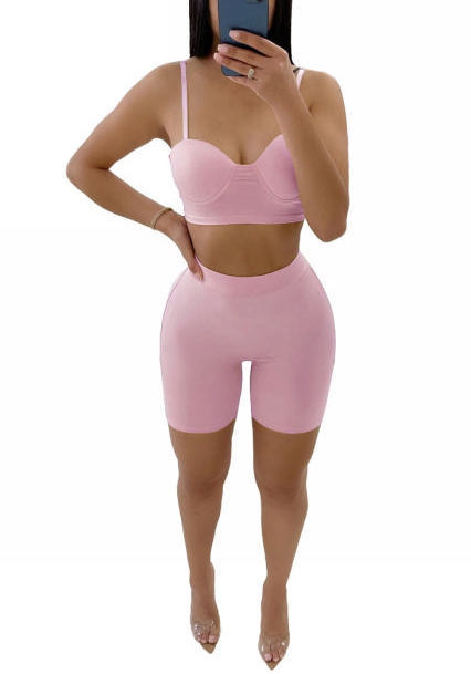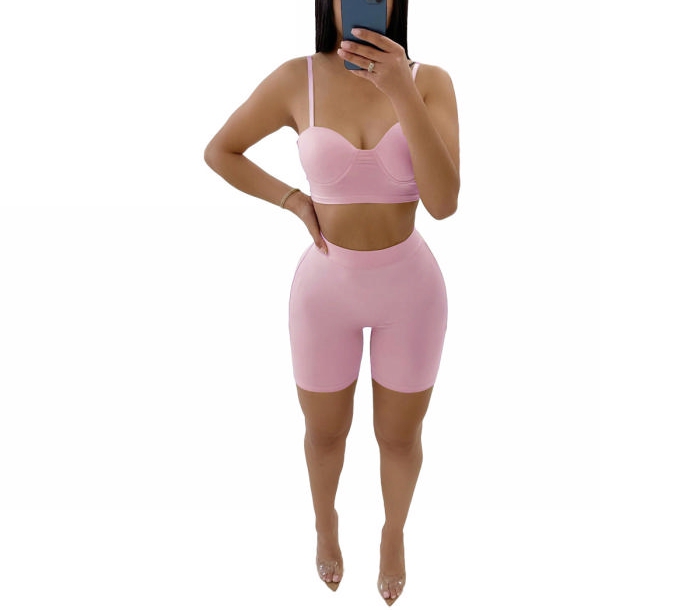2022 Styles Women Fashion Summer INS Styles Strap Solid Color Short Two Pieces SuitSKU: #CF63005-2