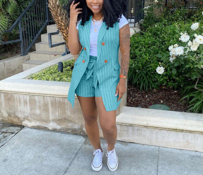 2022 Styles Women Fashion Summer INS Styles Striped OL Short Two Pieces SuitSKU: #CF64003-4