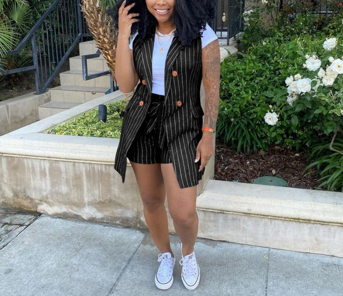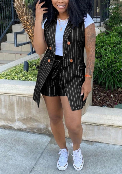 2022 Styles Women Fashion Summer INS Styles Striped OL Short Two Pieces SuitSKU: #CF64003-2