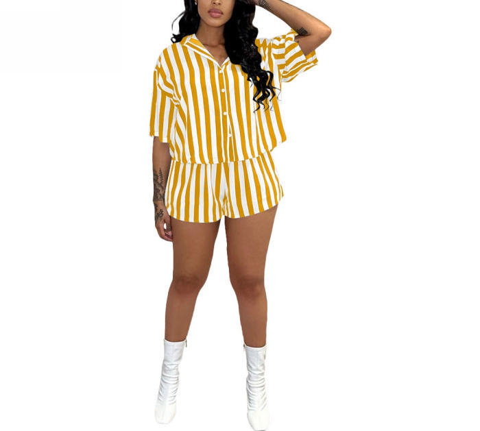 2022 Styles Women Fashion Summer INS Styles Striped Short Two Pieces Suit Short Sleeve Shirts Tops + Short PantsSKU: #CF64010-4