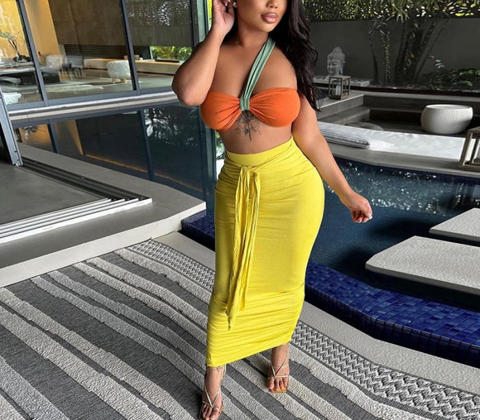 2022 Styles Women Sexy INS Styles Contrast Color Single Shoulder Maxi DressSKU: #CF48650-2