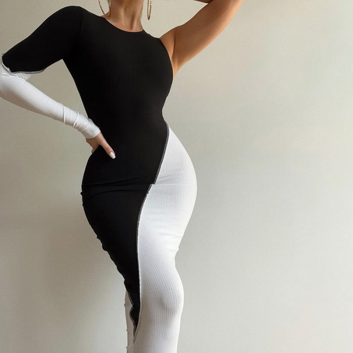 2022 Styles Women Sexy Spring INS Styles Contrast Color Single Long Sleeve Maxi DressSKU: #CF48523-2