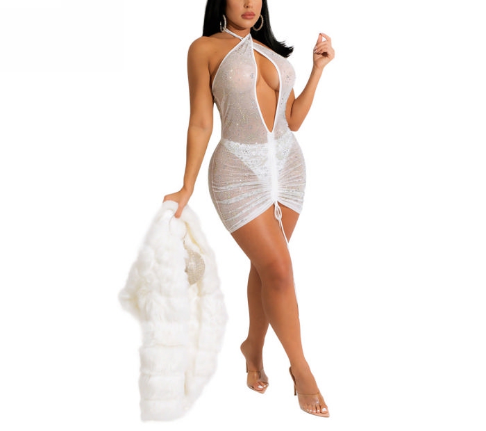 2022 Styles Women Sexy Spring INS Styles Mesh Sequins Mini DressSKU: #OEM5113-2