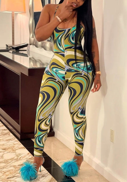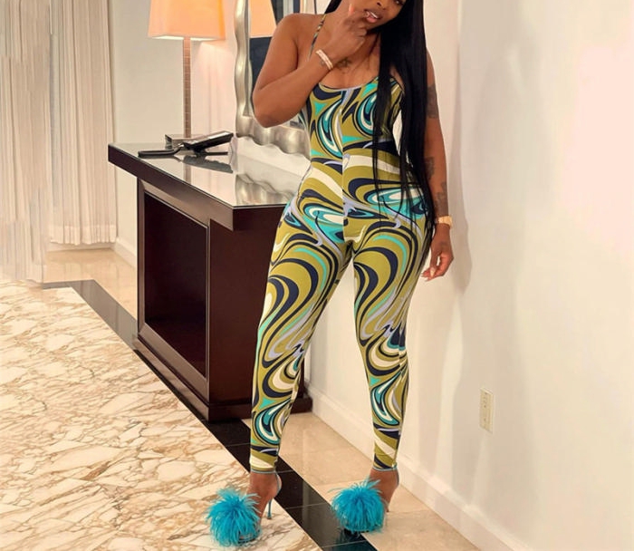 2022 Styles Women Sexy Spring INS Styles Print Strap JumpsuitSKU: #CF49522-1