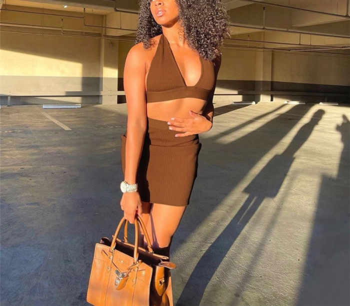 2022 Styles Women Sexy Spring INS Styles Rib Solid Color Two Piece DressSKU: #CF48547-3