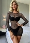 2023 Styles Women Sexy&Fashion Autumn/Winter TikTok&Instagram Styles Short Sleeve Lace Hollow Net Mini DressSKU: #CF78050-1