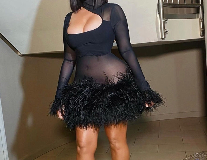 2023 Styles Women Sexy&Fashion Spring&Summer TikTok&Instagram Styles Mesh Long Sleeve Hem DressSKU: #XF92776-1