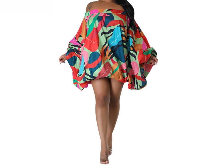 2023 Styles Women Sexy&Fashion Spring&Summer TikTok&Instagram Styles Off Shoulder Loose Casual Print DressSKU: #CF82039-1