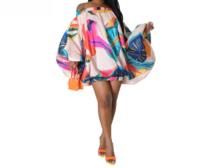2023 Styles Women Sexy&Fashion Spring&Summer TikTok&Instagram Styles Off Shoulder Loose Casual Print DressSKU: #CF82039-9
