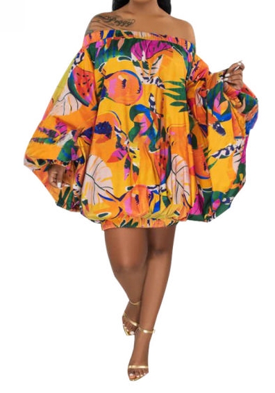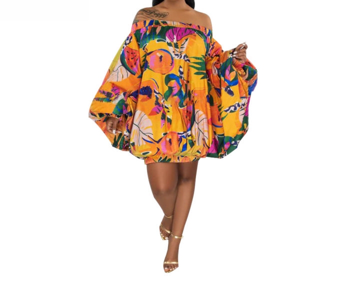 2023 Styles Women Sexy&Fashion Spring&Summer TikTok&Instagram Styles Off Shoulder Loose Casual Print DressSKU: #CF82039-2