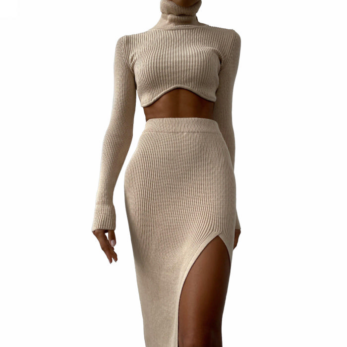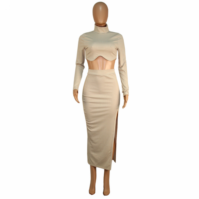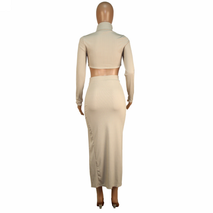(Apricot)2022 Styles Women Fashion Spring&Winter TikTok&Instagram Styles Long Sleeve Two Piece Maxi DressSKU: #XF82074-4